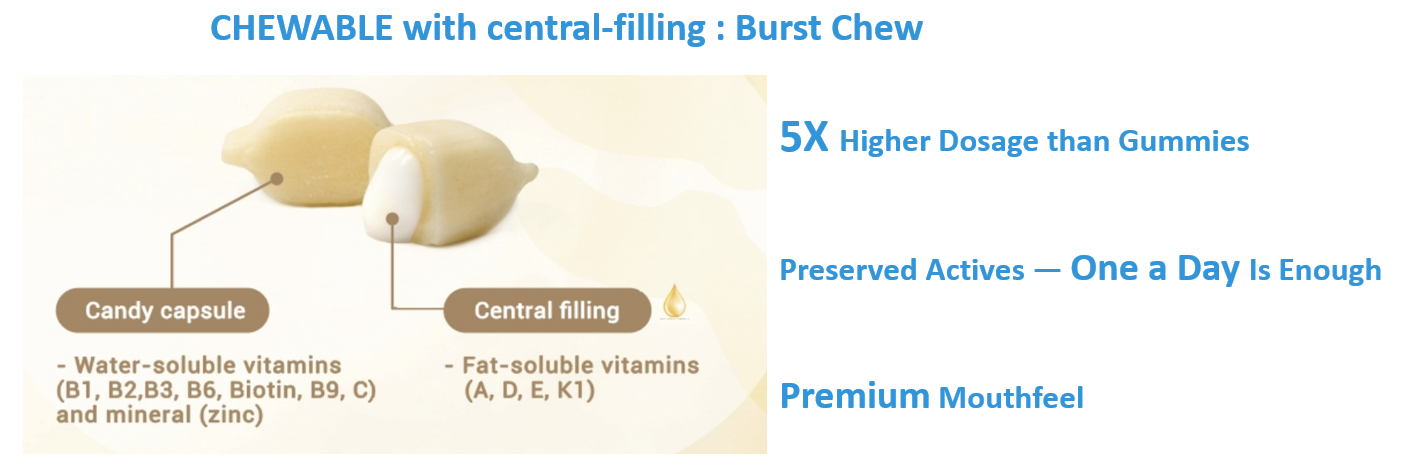 This is more than a chewable or a gummy — it’s Burst Chew technology.