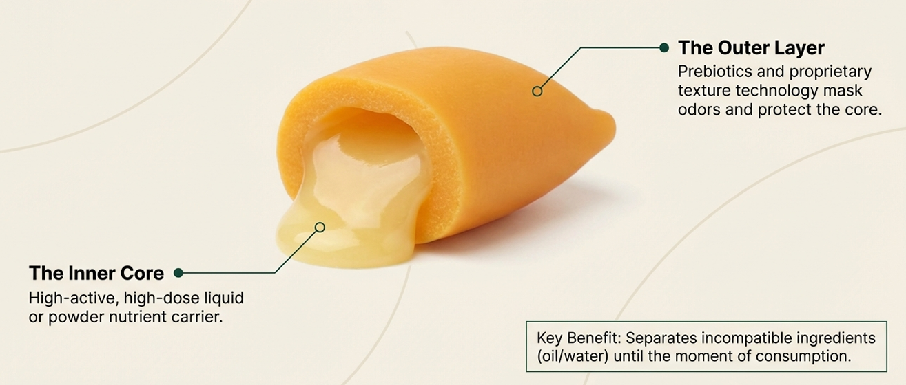 - Inner matrix wraps ingredients in a protective cocoon